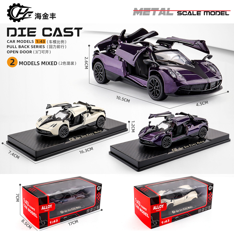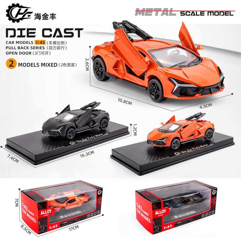Alloy multi-color sports car model – Die-cast metal body with pull-back action. Good for toddlers and older kids.