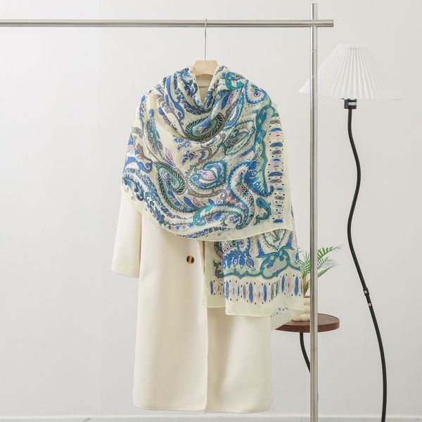 Color Premium Quality Viscose Dunhuang desert blue Long Scarf