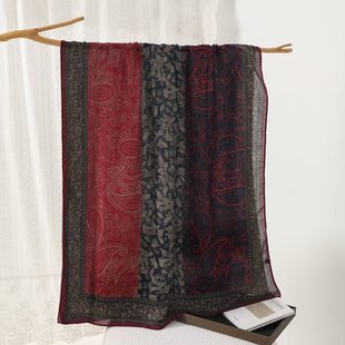 Color Premium Quality Cotton and Linen block cashew red edge Long Scarf