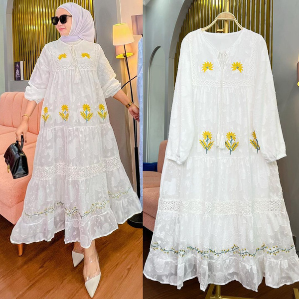 High-Quality Women’s Dress Chiffon Embroidery Dress One-Piece White