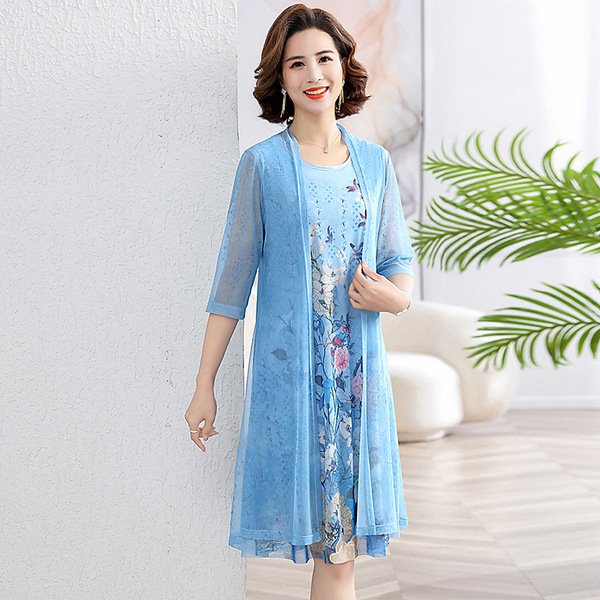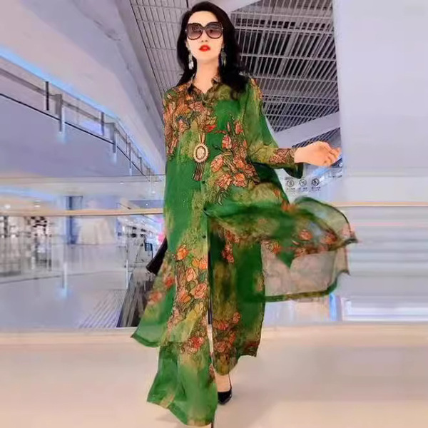 Silk Printed Two-piece Set Women’s Dress Slimming Elegant