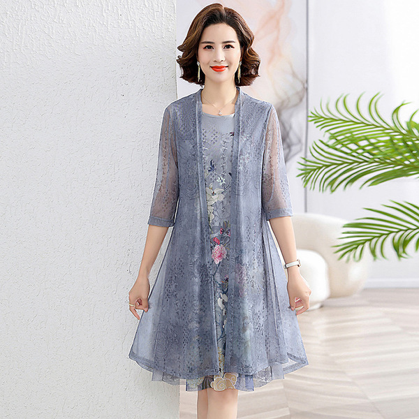 High-Quality Women’s Dress two-piece skirt Silk Elegant & Classy Look Grey