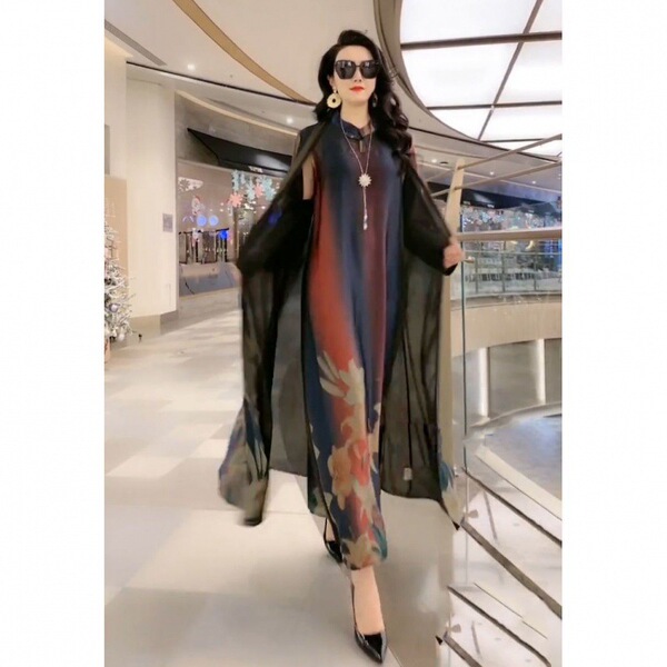 Silk Printed Two-piece Set Women’s Dress Slimming Elegant