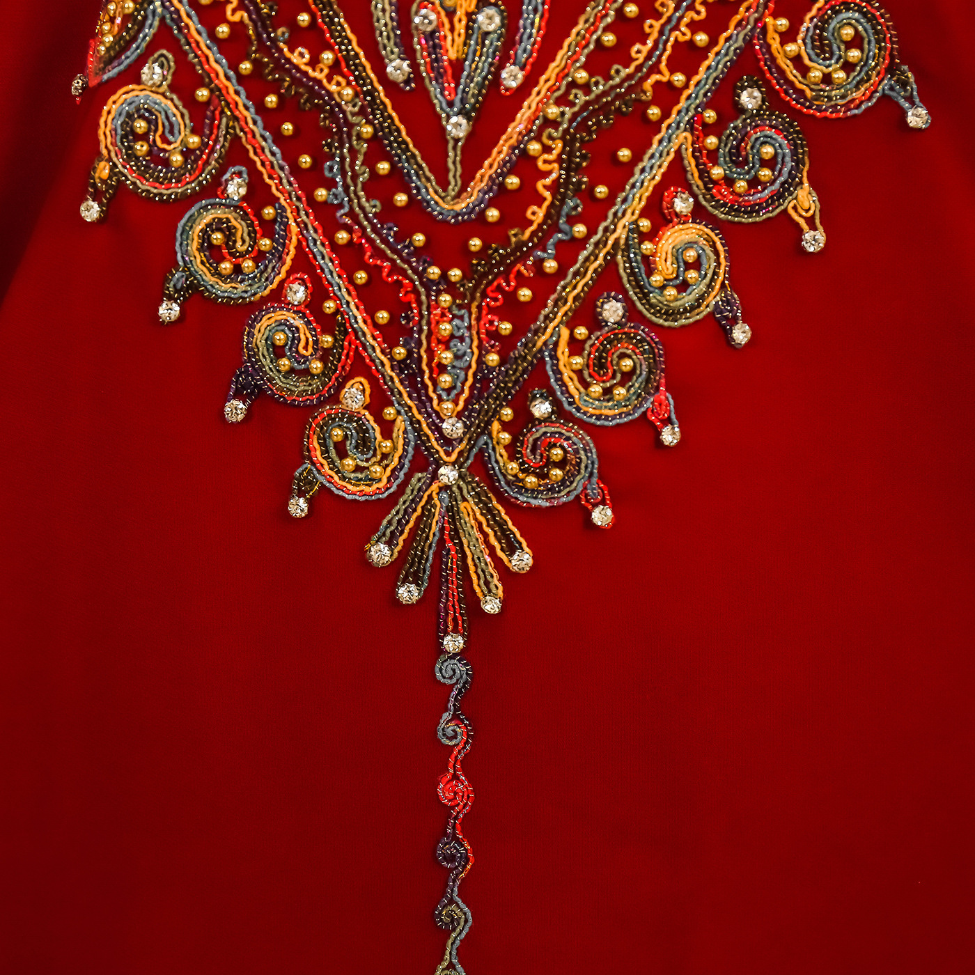 Women’s Dress Arabian Clothing Abaya Luxury Rope Embroidered Long-Sleeved Loose Robe